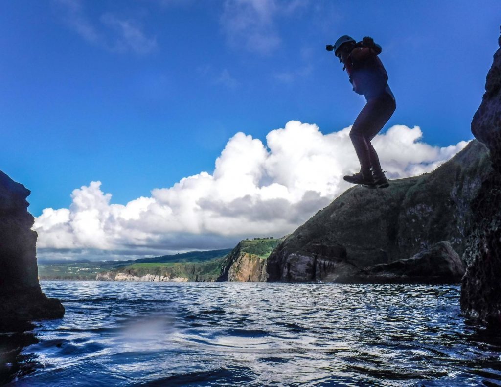 Muita aventura com saltos de penhascos, nadar no Atlântico, mergulho, escalada… Tudo isso em apenas uma atividade!